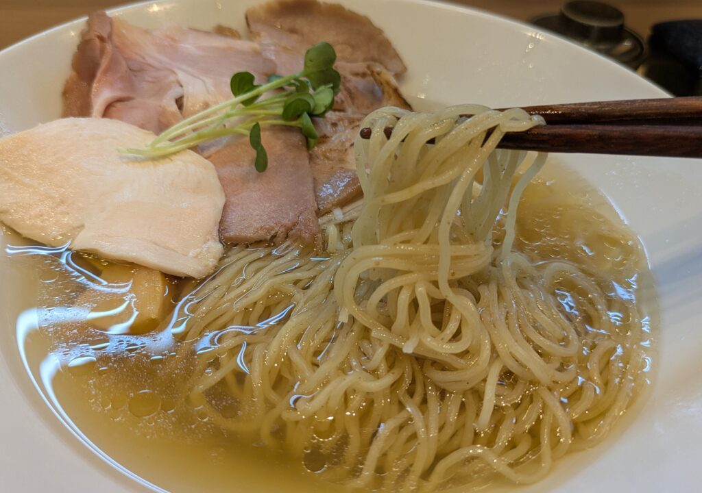 ラーメンは透き通った黄金色のスープが特徴。
